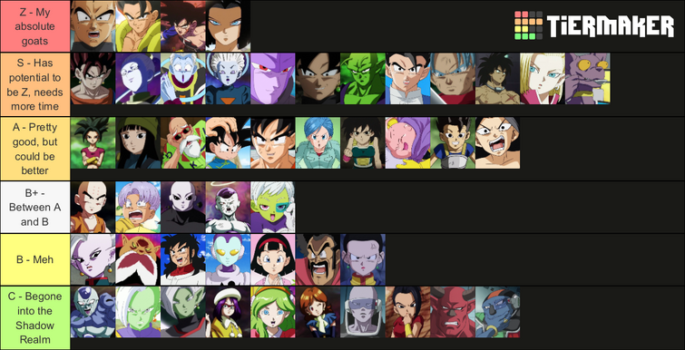 Dragon Ball Z. Was having a hard time finding a good Dragon Ball Z Character tier list so I decided to use Dragon Ball Z.